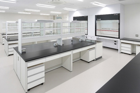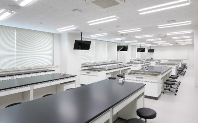 各学部が共同で利用する実習室。限られたスペースを有効活用しながら、多様な実験や実習に対応可能な設計。