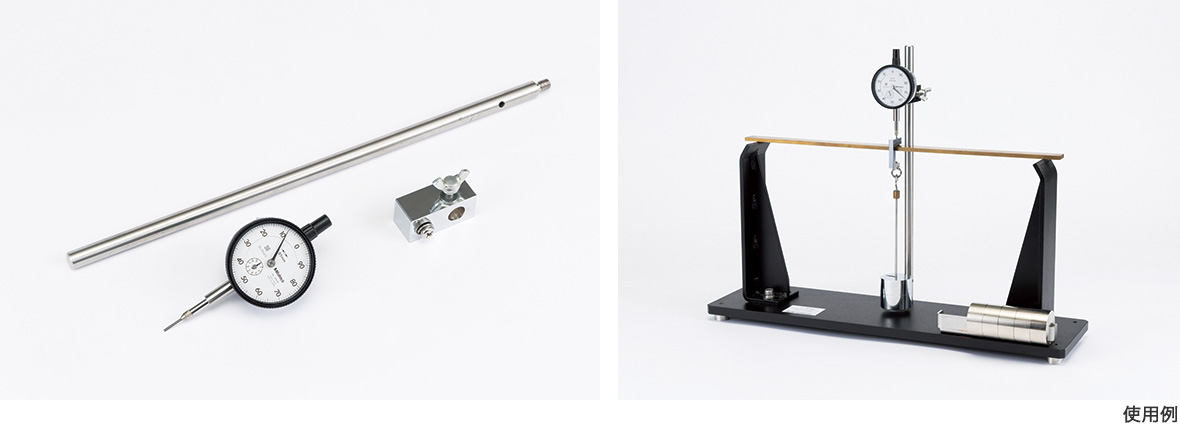 - 「読み取り望遠鏡C」を使用する光てこ法と、本セットを使用するダイヤルゲージ法でヤング率の測定方法を選択できます。