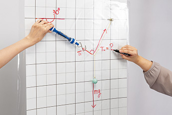 静電気で貼り付けられるホワイトボード用の透明シートが付属しているためホワイトボードマーカーで書き込みができます。