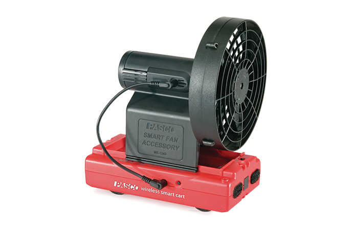 スマートカートと併せて使うと,ソフトウェアを使用してファンの推力を制御したり,特定のスタートストップ条件などをプログラムすることができるため,実験の幅が広がります。ニュートンの第2法則や、カートの加速度を測定したり、ファンの回転を逆にすればスマートカートを反対方向に進めることもできます。