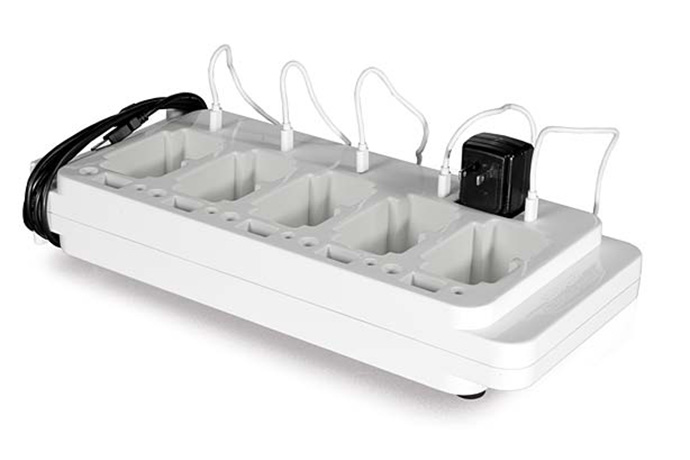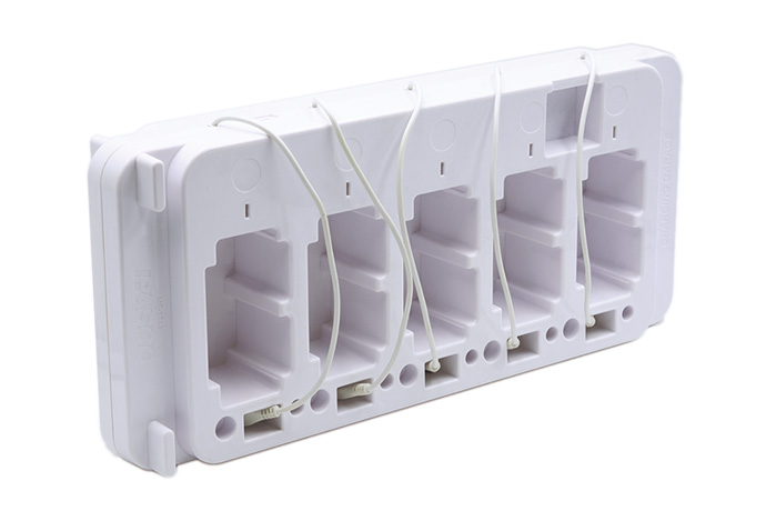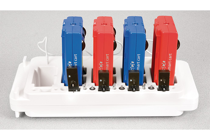 最大5台のスマートカートを充電することができる充電器です。バンパーやフックなどの小物を収納するスペースもあります。