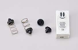 ばねによる弾性衝突と粘土をつかった非弾性衝突を比較できる | ![]() |